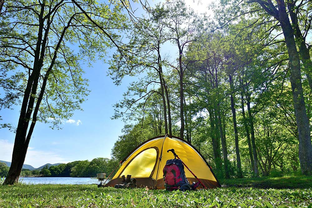 山岳キャンプでもこの自立式テントが使われますが、ペグで固定しないことから、風などの悪天候に強いとも言えます。